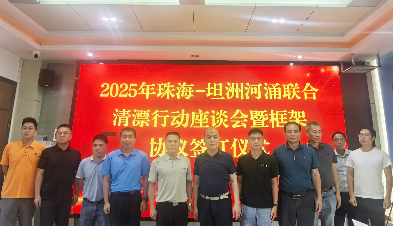会上,双方首先共同回顾了三年合作成果,并就当前跨界河涌存在问题、未来合作事宜进行了深入商讨。随后,在参会人员的共同见证下,双方代表签署《珠海-坦洲跨界河涌联合清漂框架协议(2025-2028年)》,开启珠坦河涌清漂合作新篇章,为粤港澳大湾区生态文明建设注入新动力。